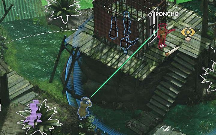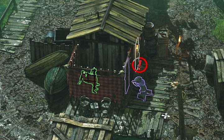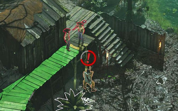 To take care of the next two enemies, you can use an opportune method that involves collapsing the balcony underneath these opponents meet from time to time. This can only be done by Hector, so you'll need to bring him to this location (watch out for footprints left by your characters!). Stand under the scaffolding and interact with it when the enemies start to talk. Their deaths will be treated as an accident.