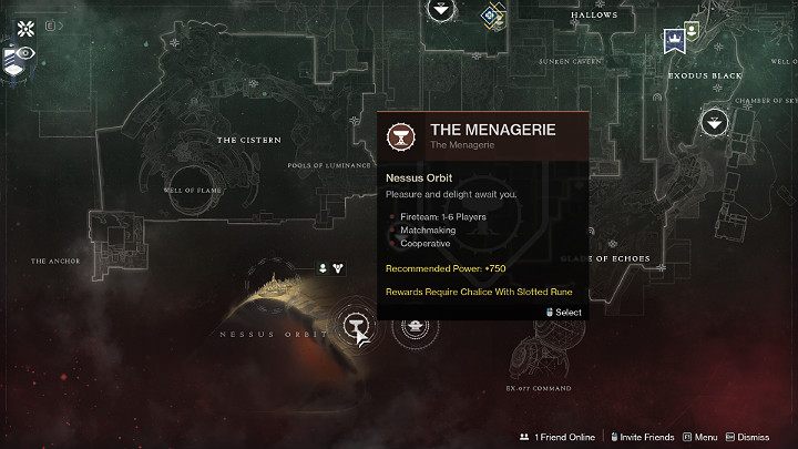 - Gameplay - you cannot participate in The Menagerie mode if you have not placed at least one rune in the Chalice of Opulence;