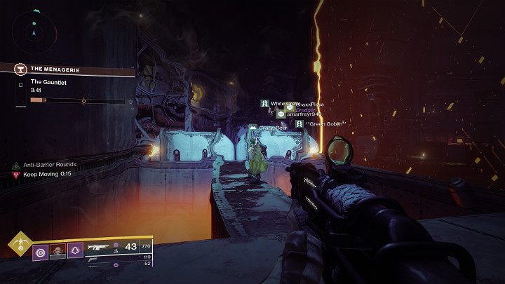The Gauntlet is one of the 6 random stages you can encounter during gameplay in The Menagerie mode in Destiny 2. During this stage you will not only have to fight opponents and mini-bosses, but also perform other activities such as obstacle runs.