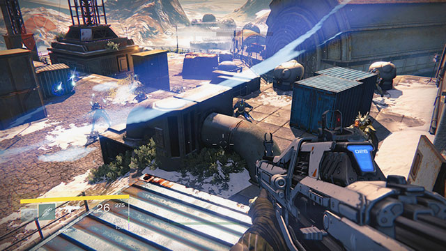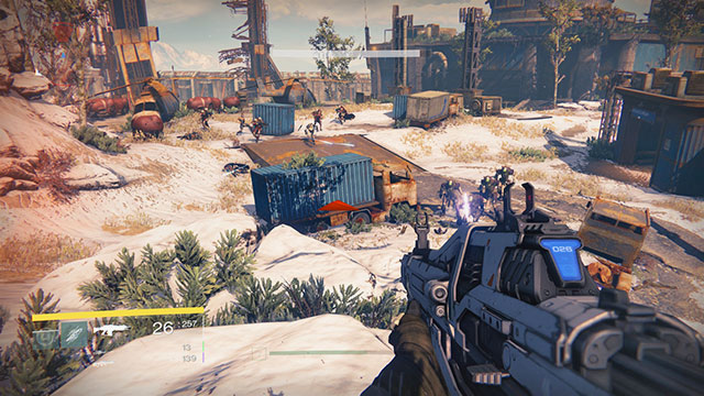 In the first room, you will be attacked by a small group of Dregs and Vandals with swords and a sniper rifle. Deal with them and keep moving towards the next room, where you will have to eliminate more Dregs. Head towards the light and, after a while, you will walk out into a big yard with huge amounts of Dregs, Shanks, Vandals and the Captain. Eliminate the first group from inside of the last room, by shooting through the smashed window. Also, you can use the other window on the right wall, to eliminate some of the opponents occupying the farther part of the location. Then, walk into the yard to eliminate the remnants. For the whole time watch out for the possible snipers that may lurk among the containers. They are incredibly accurate and they deal lots of damage.
