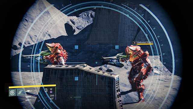 Before you enter the building, you will have to eliminate several pesky Dregs and Vandals. Then, cross through the big hole at the other side of the room and follow the path towards the ruins. You will find 2 Hallowed Knights with grenade launchers there. You can either fight with them or dash by and jump into the ruins entrance, which will allow you to avoid the fight. Climb down from the bridge and follow the small rocky corridor to reach the hidden fortress.