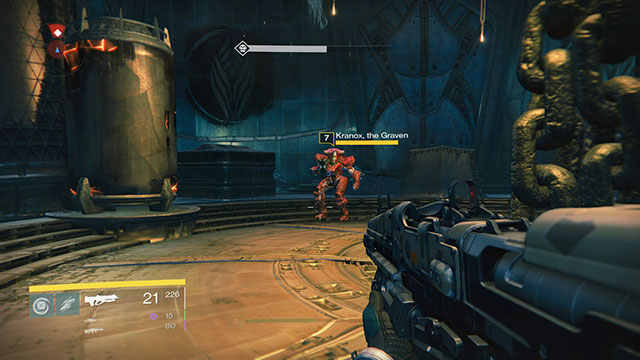 The opponents come in two waves and they will emerge from both the main entrance, as well as from the water in the middle of the hall. The first wave is the most difficult, because it consists of large numbers of Thralls, Acolytes, a Knight with a grenade launcher and a Wizard. Focus on the Thralls crawling out of the water and then, hide behind the machine that is being scanned by Ghost and start eliminating the rest of the opponents. You should especially keep an eye on the Wizard, who tends to fly onto your platform and release clouds of toxic fumes. As soon as you get rid of the first wave, there will appear the second one. Again, Thralls will be crawling out of the water and a new type of enemy will appear - Cursed Thrall. They are slower than the regular ones but, if they manage to approach you, they may jump at you and explode, which deals massive damage. They also explode after they die and they wound the nearby players and enemies. Once all Thralls are dead, a Knight with a grenade launcher emerges from the water. Also, two more will enter through the side entrances. Deal with them to defeat the second wave and to start the countdown until the end of the mission.