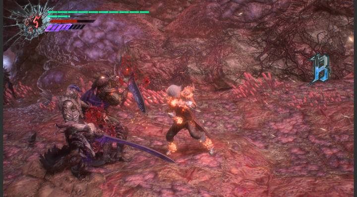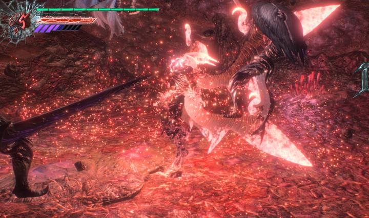 Dante uses Devil Trigger to deal more damage, increase his durability and start regenerating health. Also, some attacks get replaced with more powerful versions. Even a standard combo consisting of basic attacks can deal a lot of damage.