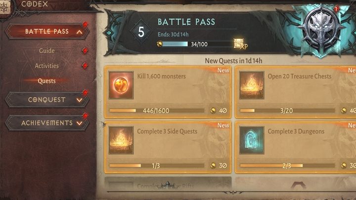 In the Codex - Quests section, you will find a few daily quests that you can often complete during free exploration, such as opening chests found on maps, killing a certain number of monsters or completing side quests. These are world events (encountered by chance during exploration, such as being attacked by monsters or encountering haunted chests).