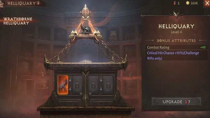 Even though you will unlock the Helliquary earlier, you will still be able to develop it. By defeating the bosses once a week, you will be able to unlock higher levels of the Helliquary. Defeating bosses will earn you trophies, which will give you passive bonuses. The decision to enter the fight is influenced by your Combat Rating level - you can choose both the boss and the difficulty level.