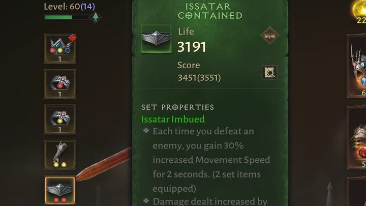 Set items generate a passive bonus for a hero who has at least 2 items from the same set. These items have a green background and are the highest level of gear available to the player. You cannot trade them, so you collect them as your own personal challenge, according to your preferences.