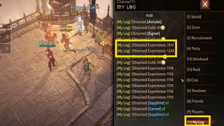 You can follow the current experience progress, as well as the latest rewards, from the Log level, via chat. This way, you will see which activities bring you a lot of XP and which ones aren't worth your time. You will also learn about other recent rewards, including material ones.