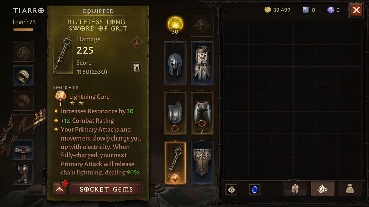 - Legendary gems: unlike normal gems, legendary gems can be used up to 6 gear elements at the same time: weapons, armor, leg armor, boots, gloves, helmet, shoulder armor.