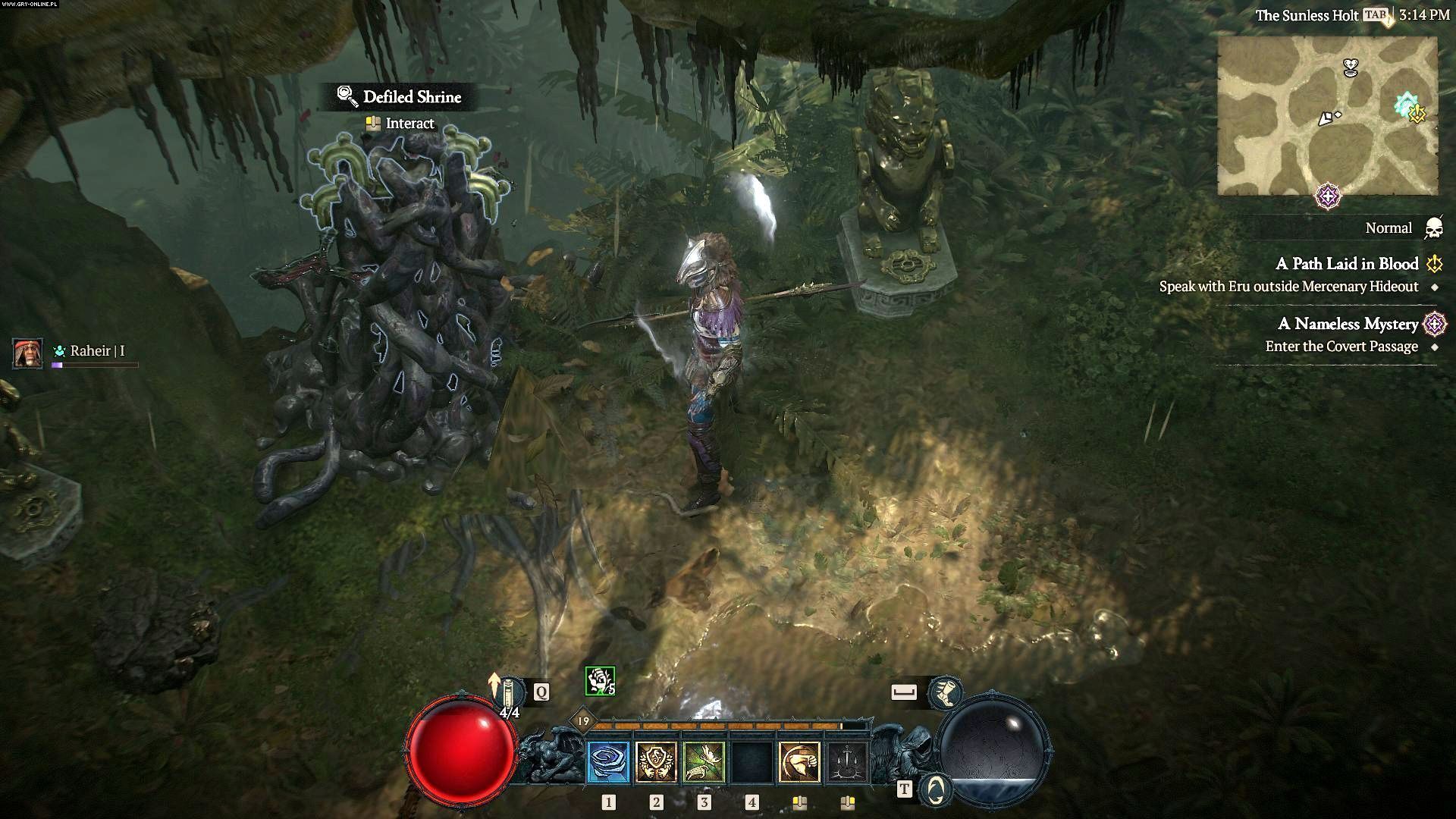 The Defiled Shrine is in the southwest area, next to the passage to Five Hills. Defeat a group of Shades of Hatred that will appear in several waves. This will reveal the Tenet of Akarat.