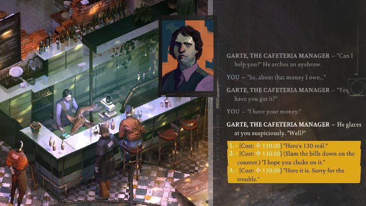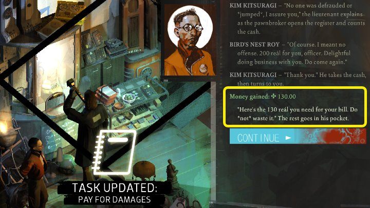 On this page of the Disco Elysium guide, you will find a detailed walkthrough of the Pay for damages side quest. In our walkthrough, you will learn how to collect the necessary 130 reals, how to lower the bill owed to Garte, and how to make it easier to cover the damage in Whirling-in-Rags caused by Harry.