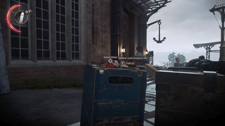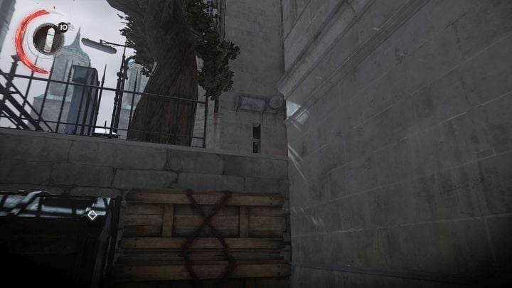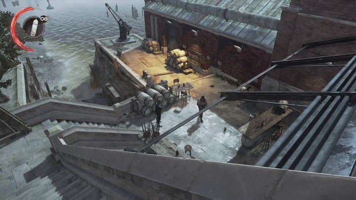 Once you explore the first part of Dunwall streets you can either go through the main gate, or use the balcony in Dunwall Courier building to get through the area undetected. Regardless of the chosen way, make your way to The Black Pony Pub. You can find some valuables there that should be picked up before boarding the boat.