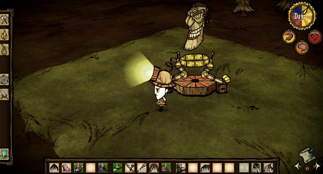 3. An item that you should take with you over to the next world is the Walking Cane. It is very useful because it speeds you up, and can be used as an indestructible weapon. The easiest way to craft it is while in The King of Winter world, as it requires a Walrus Tusk, dropped by the dead MacTusk. This enemy appears only in winter. More about this enemy can be found in the chapter entitled "Bosses".