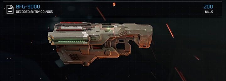 The most powerful weapon in the game. BFG is obtained automatically during Advanced Research Complex level. This gun doesn't appear in the weapons wheel. Instead, you have to press one of the buttons to equip it. BFG is used sparingly due to its limited ammo. Because of that you should always be sure that each shot will kill as many demons as possible.