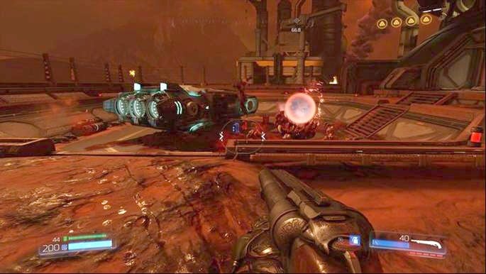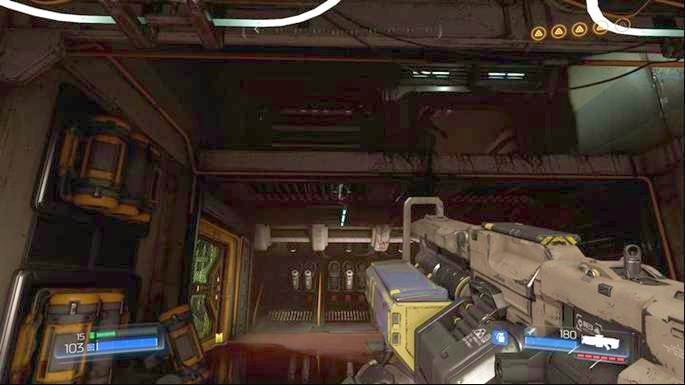 Soon after you receive the task to reclaim the yellow key, a large group of demons will appear. Use the gravity launcher once the last enemy is dead and jump to the platform above. There will be another Elite Guard lying there.