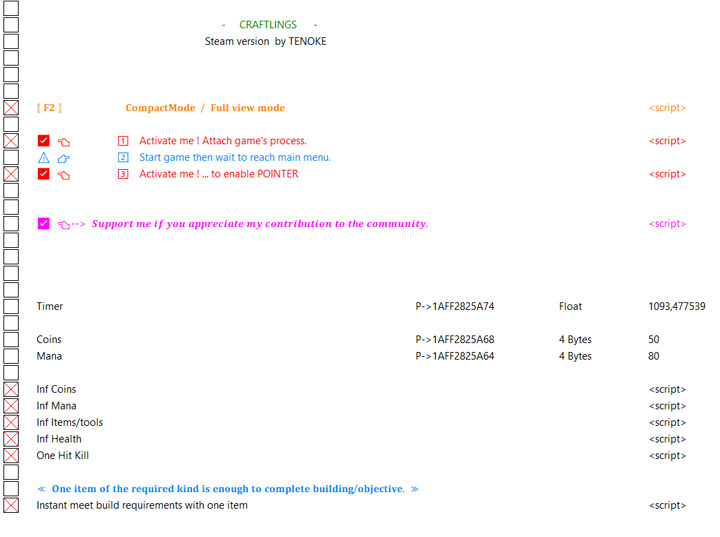 Cheat Table is script for Cheat Engine to be used in Craftlings. It was created by LIOBOSS.