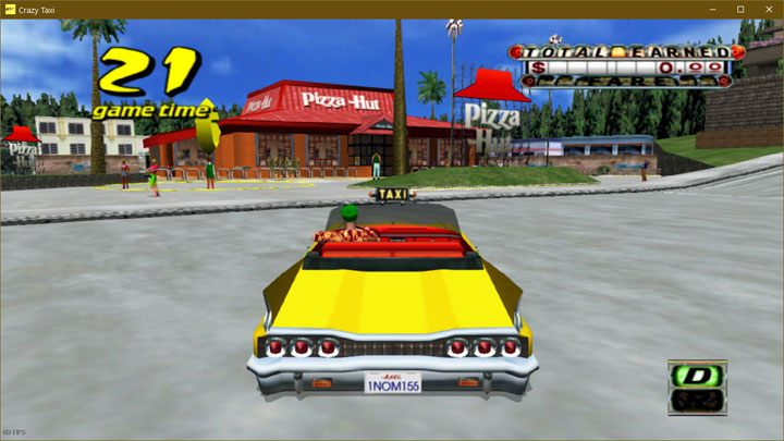 This plugin for Crazy Taxi restores the original licensed brands from the Arcade and Dreamcast versions. The original version of the mod was made by Alexvgz and involved replacing textures; after some investigation I found a way to restore brands by editing the code instead. This has also allowed for complete restorations of FILA and Pizza Hut logos, and for a restoration of FILA as a possible customer destination - unlike other licensed brands, FILA was not only made unmarked, but also made unreachable by customers.