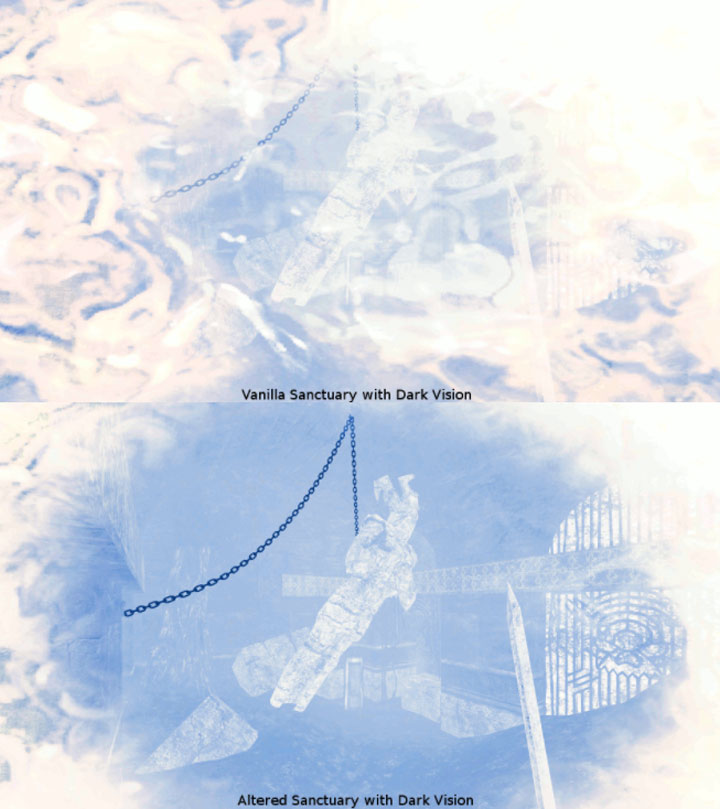 Increases the transparency of Sanctuary's visual effect to improve visibility in darkness.