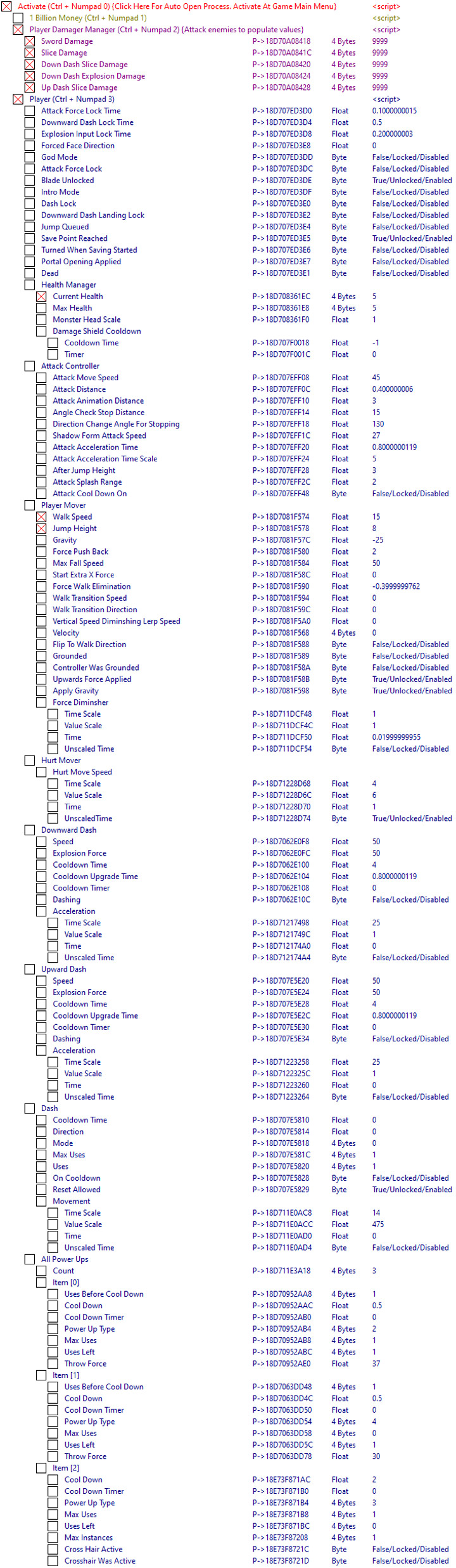Cheat Table is a script for Cheat Engine to be used in Doomblade. It was created by ndck1.