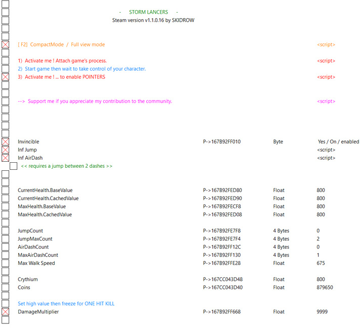 Cheat Table is a script for Cheat Engine to be used in Storm Lancers. It was created by LIOBOSS.