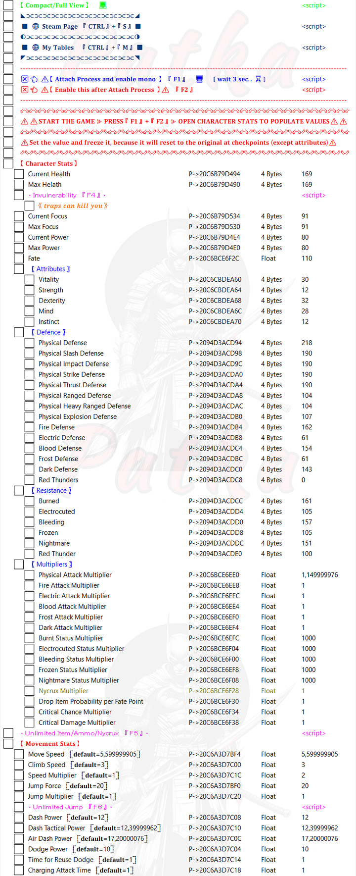 Cheat Table is a script for Cheat Engine to be used in Last Faith. It was created by Patka.