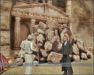 Sadly, you'll lose your pick axe while trying to get out of the tomb. The good news is that the spike will reappear in your inventory, because this is the only item you were able to retrieve from the damaged pick axe. You'll find yourself standing outside of the tomb. Talk to the old man (screen) and he'll introduce himself to you as Herodotus. This is a very important conversation, so you shouldn't skip it. You'll find out more about the tomb and what's hidden inside it. Your next objective will be to retrieve some of the key artefacts in order to rebuild the seal. Herodotus will give you a document - Herodutus' list. This is the list of items you'll have to find before going back to the tomb. Wait for the game to transport you back to Cairo's marketplace.