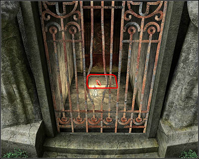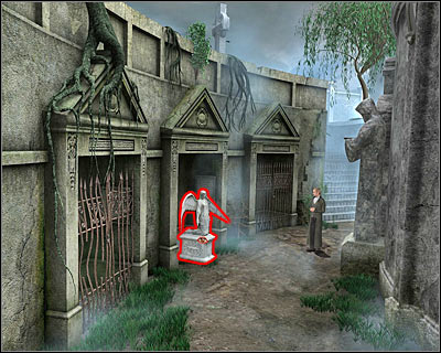 Use the lamp on an opening (where you were able to stretch some of the bars). Van Helsing should automatically place the lamp inside the tomb. Your next challenge will be to read the inscriptions on the gravestone (screen). Click on the tomb and you'll be rewarded with a new document - Poem from the crypt. Make sure that you've read the poem (especially the second verse), because it contains important clues on how you should act next. You may close this window. Go back to the view with the angels.