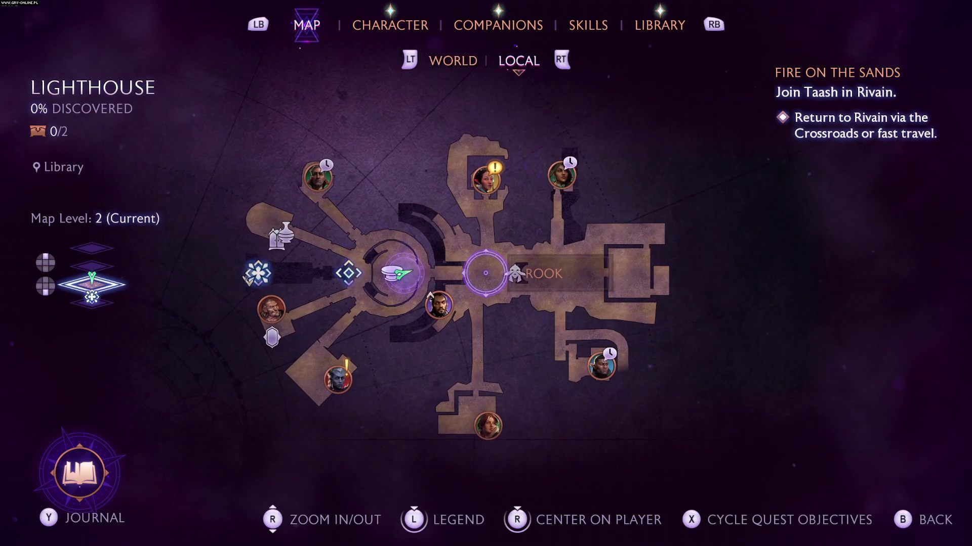 - Available companion missions are indicated by exclamation marks next to the hero icons on the map. When visiting the Lighthouse, keep an eye out to see if any of your party members have a new quest.