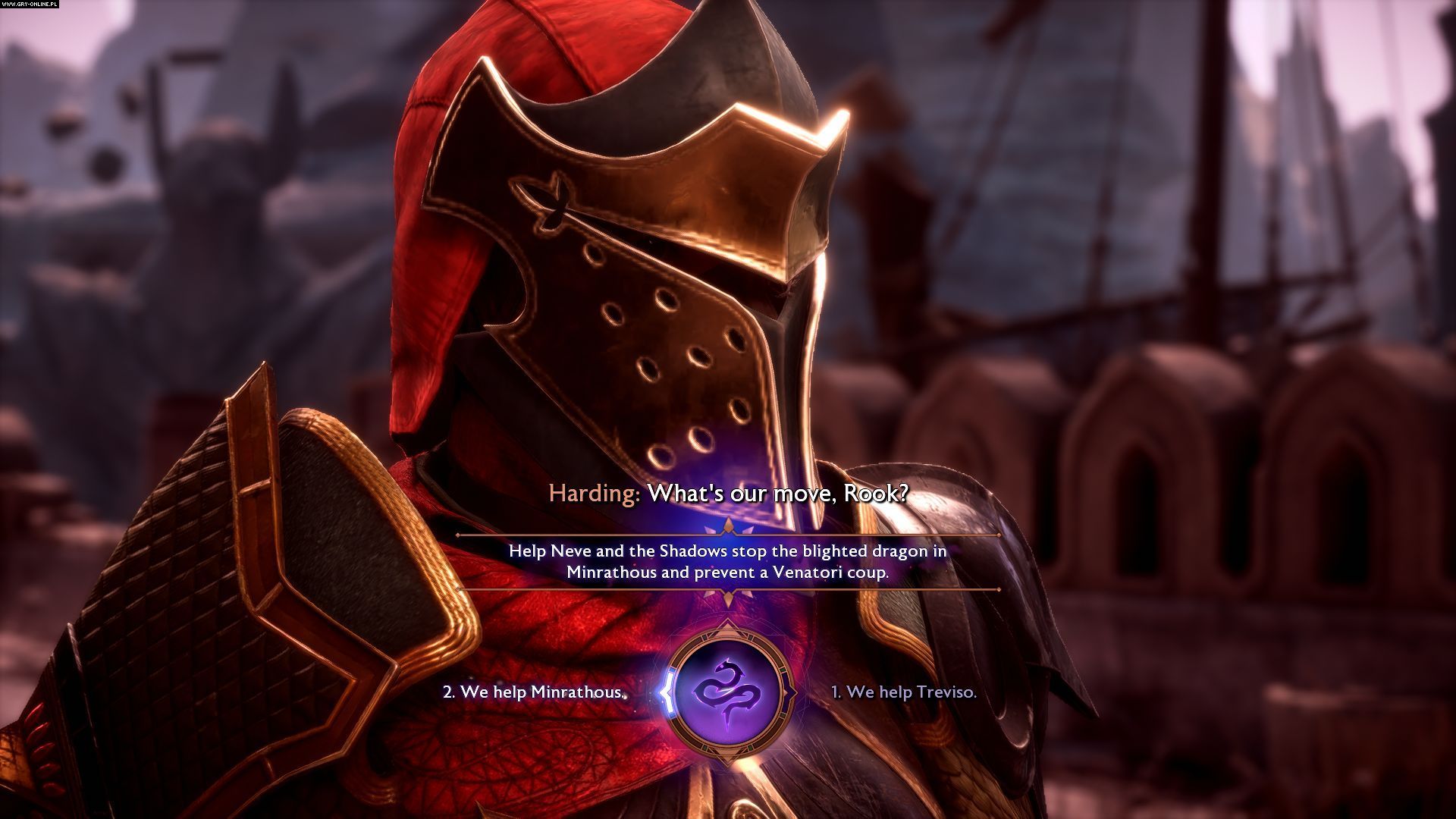 Note that this choice will have significant consequences, so we recommend saving the game before making it. The catch is that you have to do this before the boss fight during Davrin's quest. After defeating the boss, a cut-scene will trigger in which you will immediately have to choose between Minrathous and Treviso.