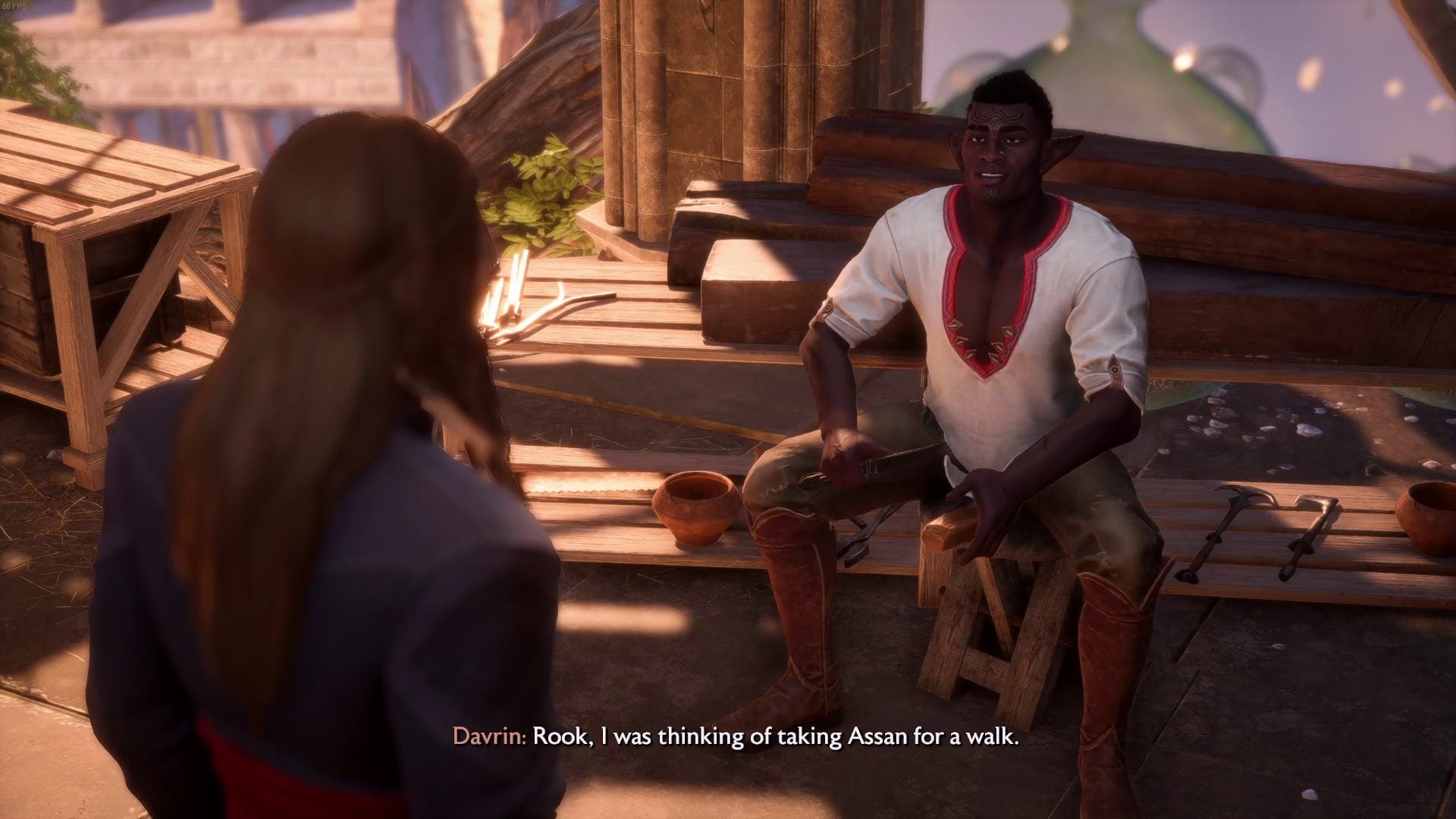 You'll receive Davrin's first quest shortly after meeting the Warden, after he and Assan move into the Lighthouse. While at the base, pay attention to the exclamation point next to the hero icon on the map. As soon as it appears, talk to Davrin to receive the quest.