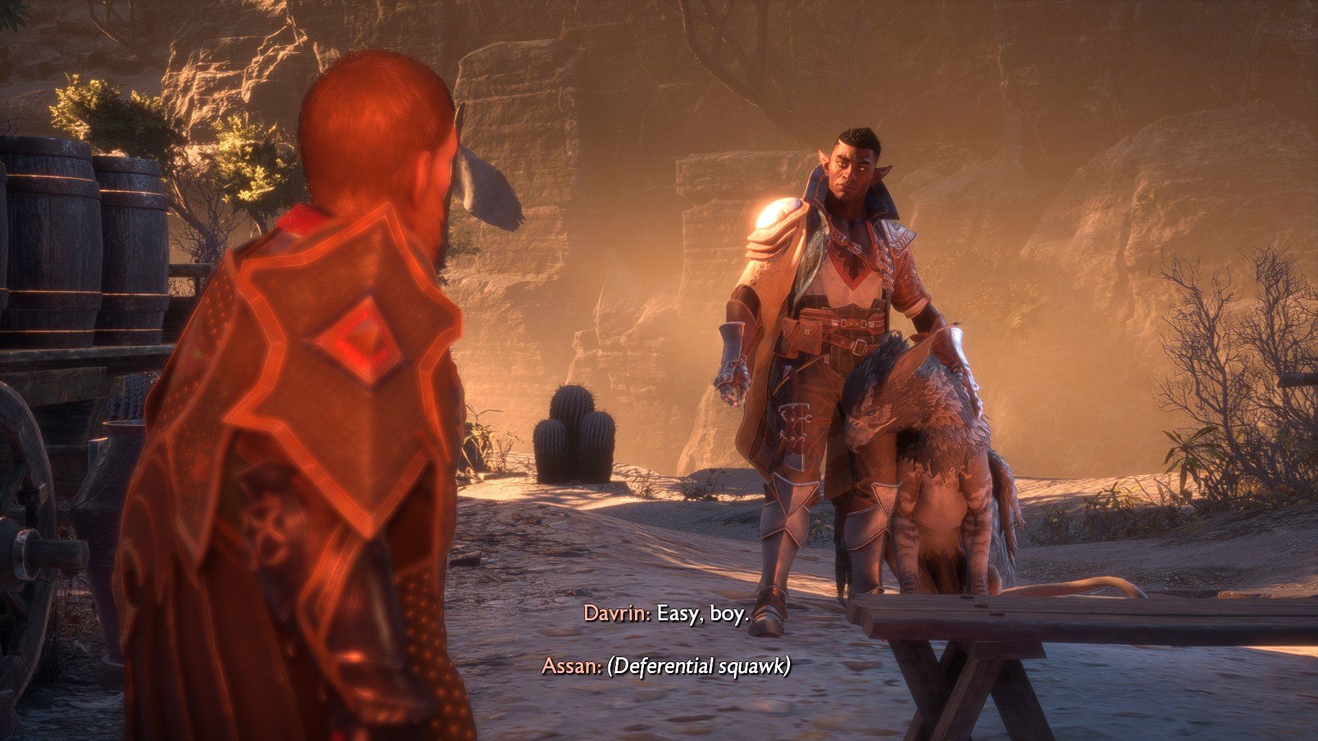 Davrin is accompanied by the griffon Assan - the animal appears during conversations and cut-scenes, and can also participate in fights (some of Davrin's skills summon the creature). You can also pet the griffon after returning to the Lighthouse.