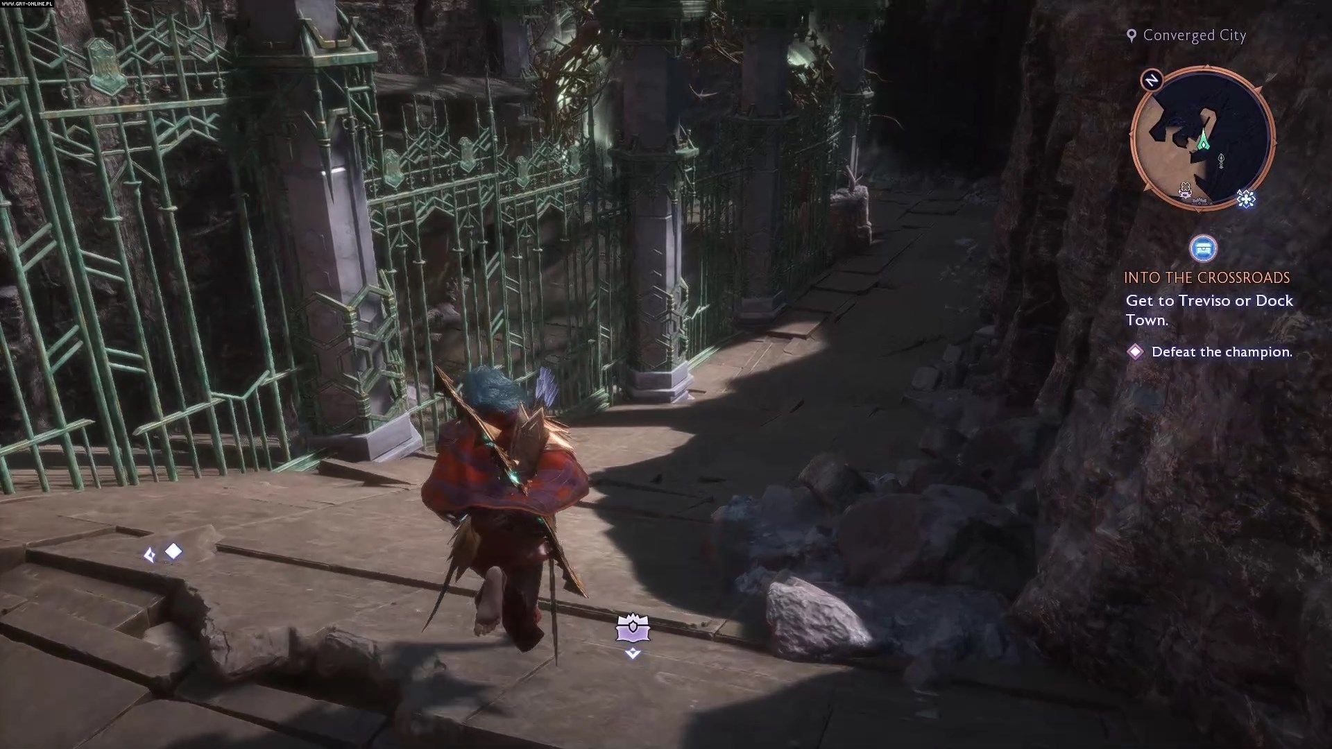 You will encounter many Venatori and their protective crystals here. You must destroy them all and kill all enemies to proceed. Look out for red beams of light that will guide you to the next crystals - they are located on the cliffs on the sides of the area.
