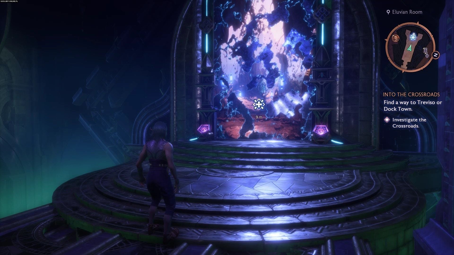 You will start the quest in the Lighthouse. You must go to the chamber with the eluvian, where Bellara repaired the aforementioned portal. Go through it to reach the crossroads - from here you can travel to many other locations. However, you must first find the eluvians that are used for this purpose. To do this, after passing through the eluvians in the Lighthouse, go to the edge of the cliff marked by the game, where a flying boat will come to pick you up. Board it.