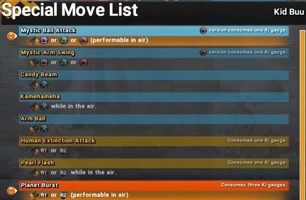 - Planet Burst - you have to be really close: Kid Buu shouts at an enemy and then throws a giant energy ball.