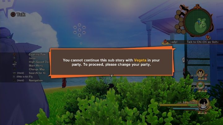 Let's start with the fact that you can't have Vegeta in your party if you want to begin this mission.