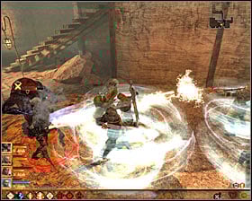 The fight consists of as much as five parts, but Quentin will become an active participant only after you advance to the last part. Until then he will be hiding inside a protective barrier #1 and won't interfere with your fights. In the first part you will have to face only a couple Corpses and one Shade #2.