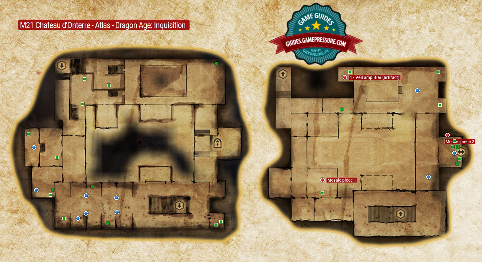 Above, you can find the map of Chateau d'Onterre. You can explore the location while at the Emerald Graves. It takes place during one of the side quests of the same name as the location. The most valuable items to obtain at the castle is the levitating cube, but it is being guarded by a quite strong monster so, too weak a party may have problems fighting it.