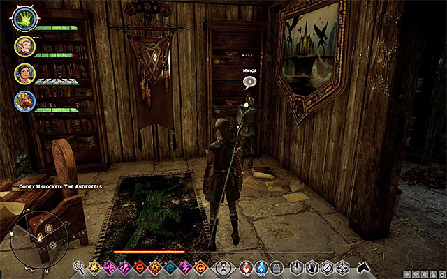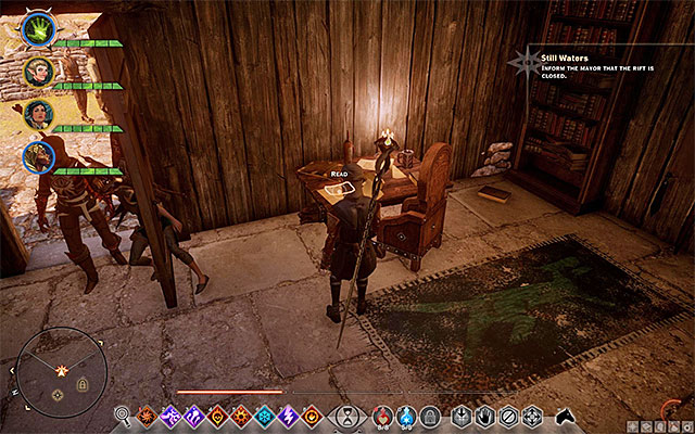 Enter Crestwood and head towards the hill to the East. It is here where the house of the Mayor is (M13,1c). Enter the house and talk to him about the plans to seal the rift on the lake. The plan is that you reach the dam and interact with the mechanism to lower the water level in the lake. The problem is that the only approach is near the keep that is being occupied by bandits.