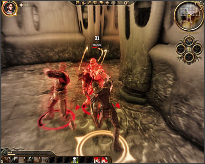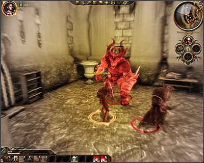 Make a few steps forward and talk to a friendly character Niall (M35, 3). Listen to what he has to say about the Fade and then use a nearby portal (M35, 4). Defeat a single demon and talk to the Mage apprentice (M35, 5). During the conversation he'll teach you how to transform yourself into a mouse and you can test this feature right away. Notice that you can also camouflage yourself. This may come in handy while trying to avoid more powerful creatures instead of fighting them.