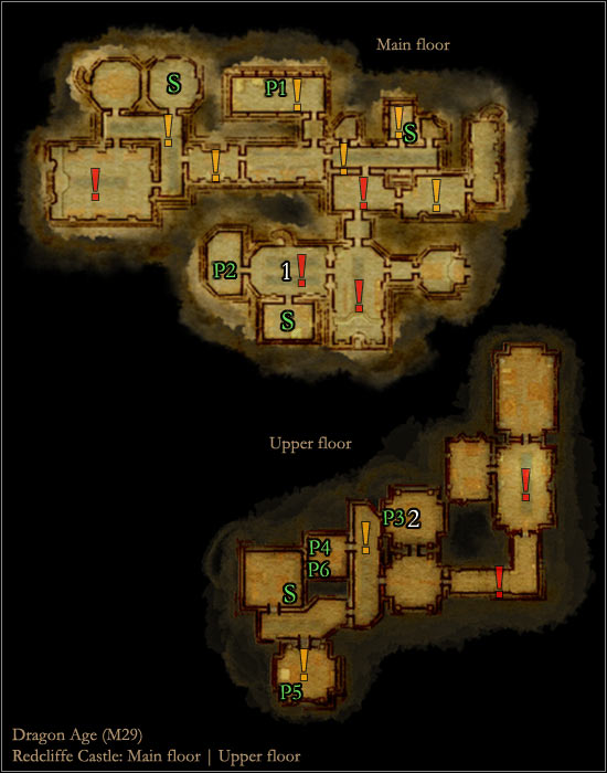 - During your first visit to the castle and prior to resolving the situation with Connor you should kill the possessed chamberlain found in [Redcliffe Castle - Main floor] (M29, 1). Check his body after the battle to collect a vault key. You can now travel to [Redcliffe castle - Upper floor]. The key can be used to open one of the northern rooms (M29, 2). As suspected, it's going to be a vault filled with a lot of useful and expensive items.