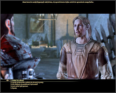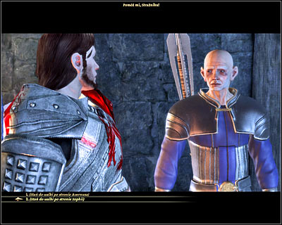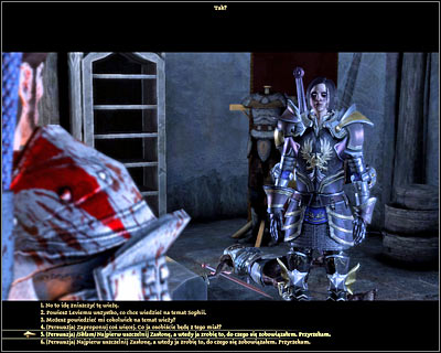 After you've successfully defeated the boss you'll trigger a new conversation with Levi and you'll be allowed to inform him that it's possible for Grey Wardens to become blood mages. Don't forget to examine the demon's body to collect Winter's breath staff. You may now proceed to a nearby chapel where you'll have to defeat a small group of the undead. Once it's safe head north-east (DLC2, 11). Save your game before entering new quarters, because you'll have to make an important decision on how this quest should end.