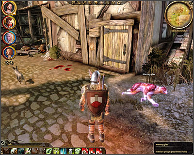 The next lead can be found to the south-east of Cyrian's house. Find a rotting corpse of a dog (M66, 7). Once you've examined the body return to Sir Otto (M66, 5) and share the information about all the clues you've discovered. You may now follow the templar to a door leading to [Denerim - Elven alienage - Abandoned orphanage] (M66, 8). Save your game after arriving in the orphanage (M67, 1), because there's a high probability of failing this mission if something goes wrong in the next few minutes.