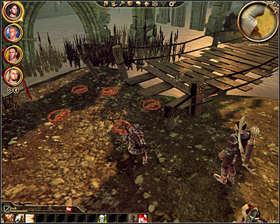 You should be able to notice a small wooden bridge in the distance (M22, 7). The bridge is going to be defended by monsters and you'll have to watch out mostly for a Hurlock emissary. Keep your team members far away from each other, because the emissary is going to be a mage and it'll throw a lot of fireballs at your men and women. You must keep attacking the mini-boss from the distance, because the area around the bridge is filled with traps. Keep attacking the monster until it's killed.