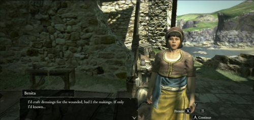 Benita, the local nurse, will ask you for help in finding two kinds of herbs which she needs to prepare a healing elixir.