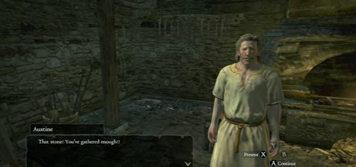 After collecting the stone fragments, go back to Austine and hand him the stone.