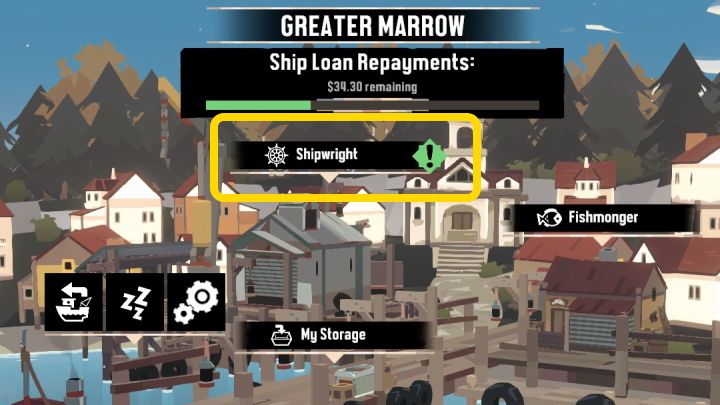 A new option has appeared on the city screen. Click on Shipwright and talk to the mechanic. From now on, you can buy new equipment and repair the ship. This completes the quest.