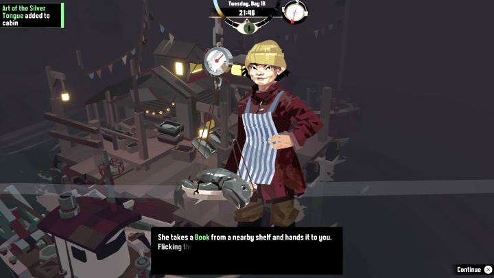 Reward for reading: 10% improvement in buying and selling prices. This is a very important book - you can sell goods to traders for higher prices and buy their goods cheaper. The difference is especially noticeable when buying expensive things, e.g. new rods or engines.