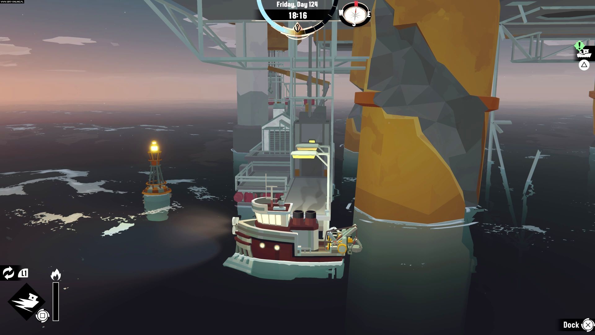 - The place to moor the boat is at one of the yellow supports of the drilling rig. You can use it from your first visit to the platform.