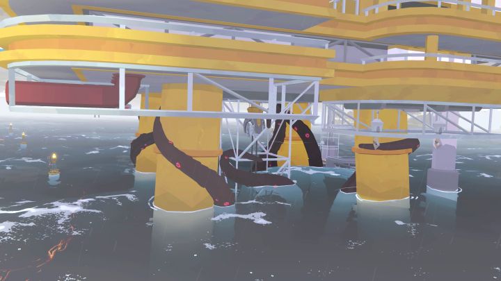 - You will watch a cutscene where you will again see the large tentacles and another monster as well. The supports will be damaged, but you don't have to worry about the risk of the platform collapsing.