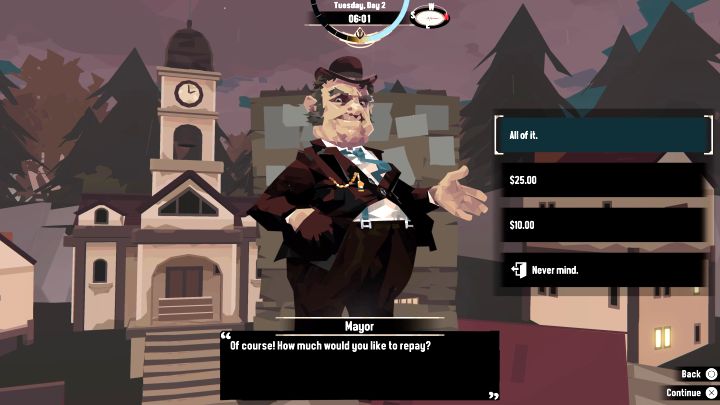 There are 2 main ways of repaying the loan. The first is more time-consuming and involves taking a part of your profit from caught fish and giving it to the Mayor. This percentile is taken each time you sell a caught fish to the Fishmonger. You can track the status of the debt through messages appearing in the upper left corner of the screen.