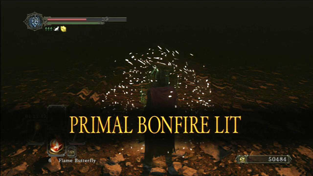 Go back up and walk through the fog to begin the fight against The Rotten. When you defeat the boss, explore the location. Take the Fire Seed from the corpse. Find a way out and open the chest that contains Bone Dust, then light a bonfire that will transport you to Majula.